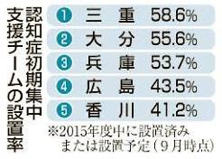 認知症初期集中支援チームの設置率 認知症の人を早期に診断し、適切な治療や介護が受けられるようにする「認知症初期集中支援チーム」を2015年度中に設置予定としたのは306市区町村で、 ...