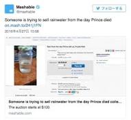 【聖水速報】ネットオークションで「プリンスが死んだ日の雨水」が売りに出される なのでプリンスさんといえば、つい "紫の雨" を思い浮かべる人は多いはず……。と、この度、ネット上で「プリンスが死んだ日の雨水」が売り出されたというではない ...