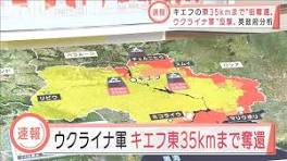 【速報】ウクライナ軍 首都キエフの東35キロ地点まで"街奪還"|テレ朝news-テレビ朝日の ... ウクライナ軍の反撃とロシア軍の補給不足で、ウクライナ側は首都キエフの東35キロの地点まで街を奪還し、防衛拠点を作ったとイギリス国防省が最新の分析結果 ...