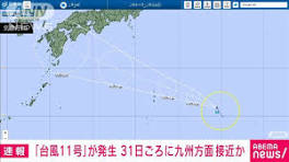 【速報】台風11号(ヒンナムノー)が南鳥島近海で発生 31日ごろ西日本に接近か - テレ朝news 28日午後3時に日本のはるか南の海上で台風11号が発生しました。 午後3時に南鳥島近海の熱帯低気圧が台風11号になりました。 台風11号は今後、西寄りに ...