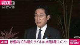| 【速報】岸田首相「暴挙だ」北朝鮮のICBM級ミサイル発射に抗議 - FNNプライムオンライン 【速報】岸田首相「暴挙だ」北朝鮮のICBM級ミサイル発射. 政治. 岸田首相は、18日、官邸で記者団に対し、北朝鮮がICBM=大陸間弾道ミサイル級のミサイル ...