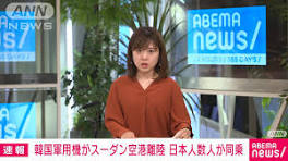 【速報】韓国軍用機がスーダンの空港を離陸 日本人数人が同行 - テレ朝news 韓国政府はスーダンに滞在中の韓国国民を乗せた韓国の軍用機がポートスーダン空港を離陸したと発表しました。 退避には日本人数人も同行しているということ ...