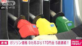 【速報】ガソリン価格 9カ月ぶりに170円台に上昇 5週連続で値上がり - テレ朝news 資源エネルギー庁によりますと、今月19日時点のレギュラーガソリンの全国平均価格は1リットルあたり170.1円で、前の週に比べると0.8円値上がりしました。5週連続 ...