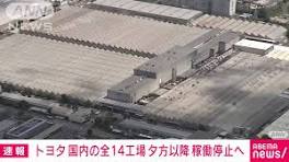 【速報】トヨタ自動車 国内の全14工場 夕方以降 稼働停止へ - テレ朝news トヨタ自動車の国内にある12の工場がシステムトラブルのため、29日朝から稼働を停止していて、稼働停止は夕方以降、国内の14工場すべてに広がるということ ...