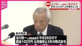 【速報】谷川弥一元衆議院議員に罰金100万円 公民権停止3年の略式命令 東京簡裁 - YouTube 自民党の派閥のパーティー券をめぐる事件で、政治資金規正法違反の罪で略式起訴され、議員辞職した谷川弥一元衆議院議員に対し、東京簡裁は罰金100万円、 ...