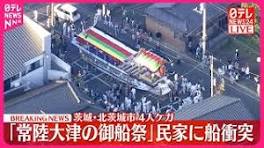 【速報】「常陸大津の御船祭」で木造船が民家に衝突 男女4人がケガ 北茨城市 - YouTube 警察などによりますと2日午後2時半すぎ、茨城県北茨城市の「常陸大津の御船祭」の会場で少なくとも数十人の祭りの参加者が7トンの木造の船を路上でひいてい ...