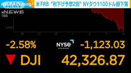 【速報】NY株式市場でダウ平均株価が1100ドル以上急落 10日続落は約50年ぶり - テレ朝news アメリカのFRB(連邦準備制度理事会)は来年の利下げ予想を2回に引き下げました。これを受けてダウ平均株価は1100ドル以上下落し、約50年ぶりに10日続落となり ...