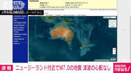 【速報】ニュージーランド南西沖でM7.0の地震 日本への津波の影響なし 気象庁 - テレ朝news 気象庁によりますと、25日午前10時43分ごろ、ニュージーランドの南西沖でマグニチュード7.0の地震がありました。 深さは不明で、震源の近くでは津波発生の ...