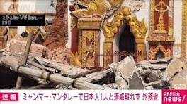 【速報】ミャンマー大地震 崩壊した建物に住む日本人1人と連絡とれず 外務省(2025年3月30日) 外務省によりますと、ミャンマーで起きた地震で、震源に近い中部、マンダレーで崩壊した建物に住んでいた日本人の成人1人と連絡が取れなくなっているという ...