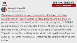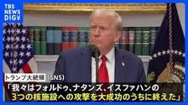 【速報】アメリカ イランの3か所の核施設に攻撃 トランプ大統領が発表|TBS NEWS DIG アメリカのトランプ大統領は、イランの核施設3か所に対して、アメリカ軍が攻撃を行ったと発表しました。 21日、SNSに「我々は、フォルドゥ、ナタンズ、 ...