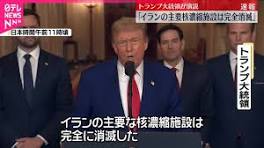 【速報】トランプ大統領「イラン主要核濃縮施設は完全に消滅」 - YouTube アメリカのトランプ大統領は、アメリカ軍がイランの3つの核施設を攻撃したと明らかにして、「今が平和の時だ」と強調しました。こうしたなか、トランプ ...