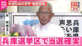 【開票速報】無所属・泉房穂氏が当選確実 兵庫/元明石市長 - YouTube 【参院選】無所属・泉房穂氏(61)が兵庫選挙区で当選確実。新人。元明石市長。 (2025年7月20日放送) ◇メンバーシップ「日テレNEWSクラブ」始まりました ...