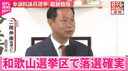 【開票速報】自民・二階伸康氏が落選確実 和歌山/元衆院議員秘書 - YouTube 【参院選】自民・二階伸康氏(47)が和歌山選挙区で落選確実。新人。元衆院議員秘書(2025年7月20日放送) ◇メンバーシップ「日テレNEWSクラブ」始まりました ...