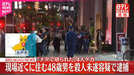 【速報】水戸市繁華街で切りつけ「ナタで切られた」4人ケガ 現場近くに住む48歳男を殺人未遂 ... 【速報】水戸市繁華街で切りつけ「ナタで切られた」4人ケガ 現場近くに住む48歳男を殺人未遂容疑で現行犯逮捕. 20K views · 3 hours ago #逮捕 #茨城県 ...