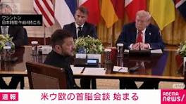 【速報】米ウ欧の首脳会談始まる ウクライナ領土や安全の保証を議論 - テレ朝NEWS アメリカのトランプ大統領と、ウクライナのゼレンスキー大統領、そしてヨーロッパ各国の首脳らが同席した会談が始まりました。 トランプ氏とゼレンスキー氏 ...