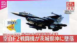 【速報】空自F2戦闘機が茨城県沖に墜落、パイロットは無事 - YouTube 7日午後0時半すぎ、航空自衛隊のF2戦闘機が茨城県沖で墜落しました。パイロットは緊急脱出して救助され、無事でした。 この動画の記事を読む> ...