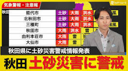 【速報】秋田県に土砂災害警戒情報 発表/土砂災害などの発生に警戒(7日5時25分発表) 【速報】秋田県に土砂災害警戒情報 発表/土砂災害などの発生に警戒(7日5時25分発表). 160 views · 15 minutes ago ...more. ウェザーニュース. 1.46M.