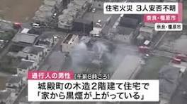 】住宅ほぼ全焼する火事 住人の高齢女性ら3人と連絡付かず 奈良・橿原市