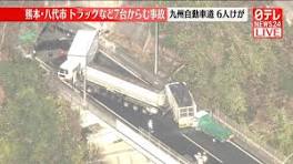 【速報】九州道上り線でトラックなど7台絡む事故 6人けが 熊本 - YouTube 警察と消防によりますと、熊本県内の九州自動車道上り線原女木トンネル付近で、普通車1台とトラック6台が絡む事故があり、少なくとも、けが人が6人いる ...