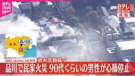 | 【速報】東京・品川で住宅火災 90代くらいの男性が心肺停止 - 日テレNEWS NNN 1日午後0時半すぎ、東京・品川区の住宅が燃える火事があり、現在も消火活動が続けられています。この火事で、90代くらいの男性が救助されました ...