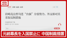 【速報】中国が自衛隊制服組元トップを入国禁止に 台湾行政院で政務顧問(2025年12月15日) 中国は、自衛隊の元制服組トップで現在は台湾で顧問を務める岩崎茂氏に対して、入国禁止などの措置を実施すると発表しました。 中国外務省は15日午前、元 ...