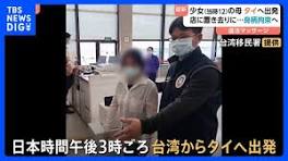 【速報】タイ少女の母親 飛行機で台湾からタイへ出発 タイ警察が人身取引などの容疑で逮捕状 タイ国籍の当時12歳の少女が東京のマッサージ店で違法に働かされていた事件をめぐり、少女の母親がさきほど、収容先の台湾からタイに向けて出発しました。