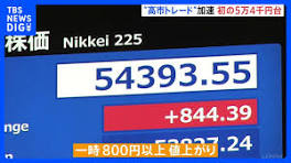 【速報】日経平均、5万4000円突破 取引時間中の史上最高値 衆院解散観測への期待続く 日経平均株価は、取引時間中として史上初めて5万4000円を突破しました。 日経平均株価は取引開始から値を上げ、一時、400円以上上昇しました。
